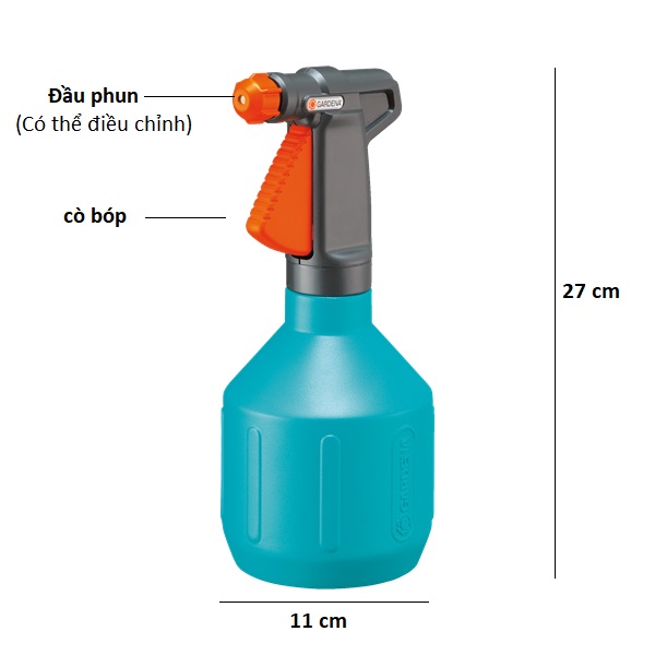 - Bình tưới cây 1 lít 00805-20 có thiết kế nhỏ gọn, cầm vừa tay kết hợp cò bấm phun cân đối.