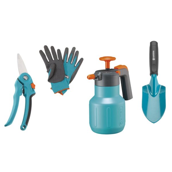 Bộ làm vườn ban công Gardena là một bộ dụng cụ không thể thiếu cho những gia đình trồng cây trong thùng xốp và những chây cây nhỏ. Các sản phẩm trong bộ làm vườn được sản xuất trên dây chuyền và công nghệ hiện đại của Đức. Sử dụng vật liệu chất lượng cao chịu được thời tiết khắc nghiệt và những tác động ngoại lực mạnh.