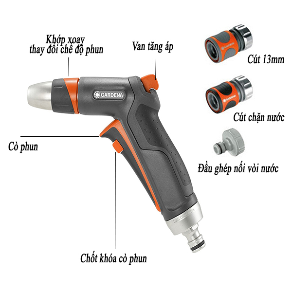 Thương hiệu dụng cụ làm vườn Gardena hàng đầu Châu Âu đã nghiên cứu và sản xuất bộ vòi phun tưới cây kèm cút ghép nối 13mm giúp bạn khắc phục những điểm yếu của dòng nước có áp lực yếu.