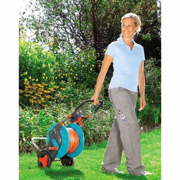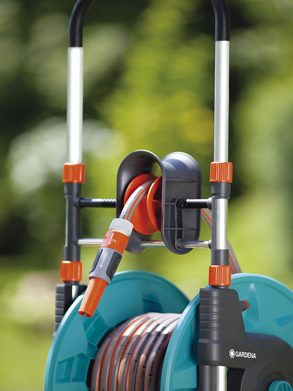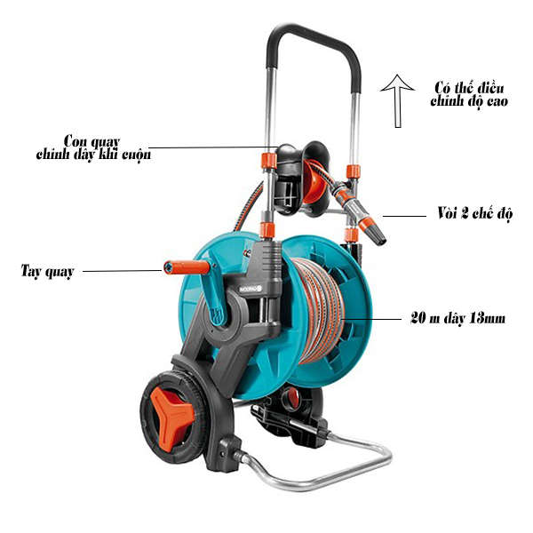 Sự linh hoạt, cơ động của lô cuộn ống nước được thể hiện mạnh mẽ với tay kéo có thể điều chỉnh độ cao và bánh xe di chuyển dễ dàng. Bên cạnh đó tính gọn gàng và thẩm mỹ khi thu cuốn dây được đảm bảo bời con quay điều chỉnh dây cuốn, giúp bạn không bị rối dây tưới khi cuộn.