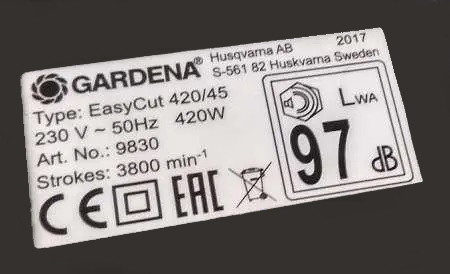 Ở mặt sau của Garden EasyCat 500/55, bạn có thể tìm thấy các thông tin sau: năm sản xuất, kiểu máy, mã sản phẩm, dữ liệu kỹ thuật ngắn gọn, độ ồn…