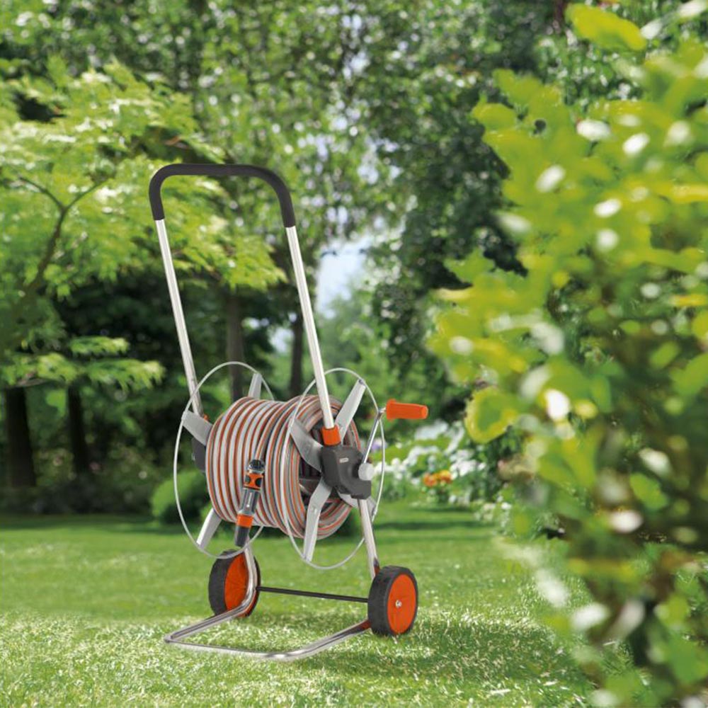 Vòi xe cuộn ống dây bằng kim loại Gardena 02681-20 giúp bạn thu gọn dây tưới gọn gàng và di chuyển dễ dàng thuận tiện. Tối đa xe có thể cuộn được 60m ống dây (13mm) và 35m ống dây (19mm)